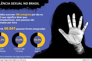 Em 2018, o Brasil atingiu o recorde de registros de violência sexual: média de 180 casos por dia. Foram 66.041 vítimas, segundo o Anuário Brasileiro de Segurança Pública, divulgado pelo Fórum Brasileiro de Segurança Pública. Mais da metade das vítimas (53,8%) têm menos de 13 anos.