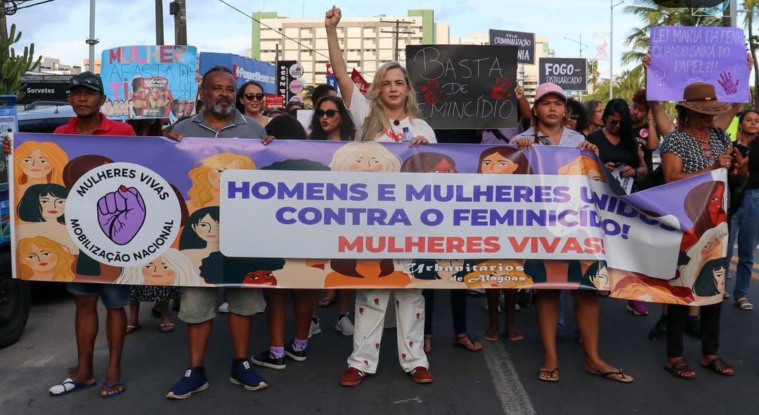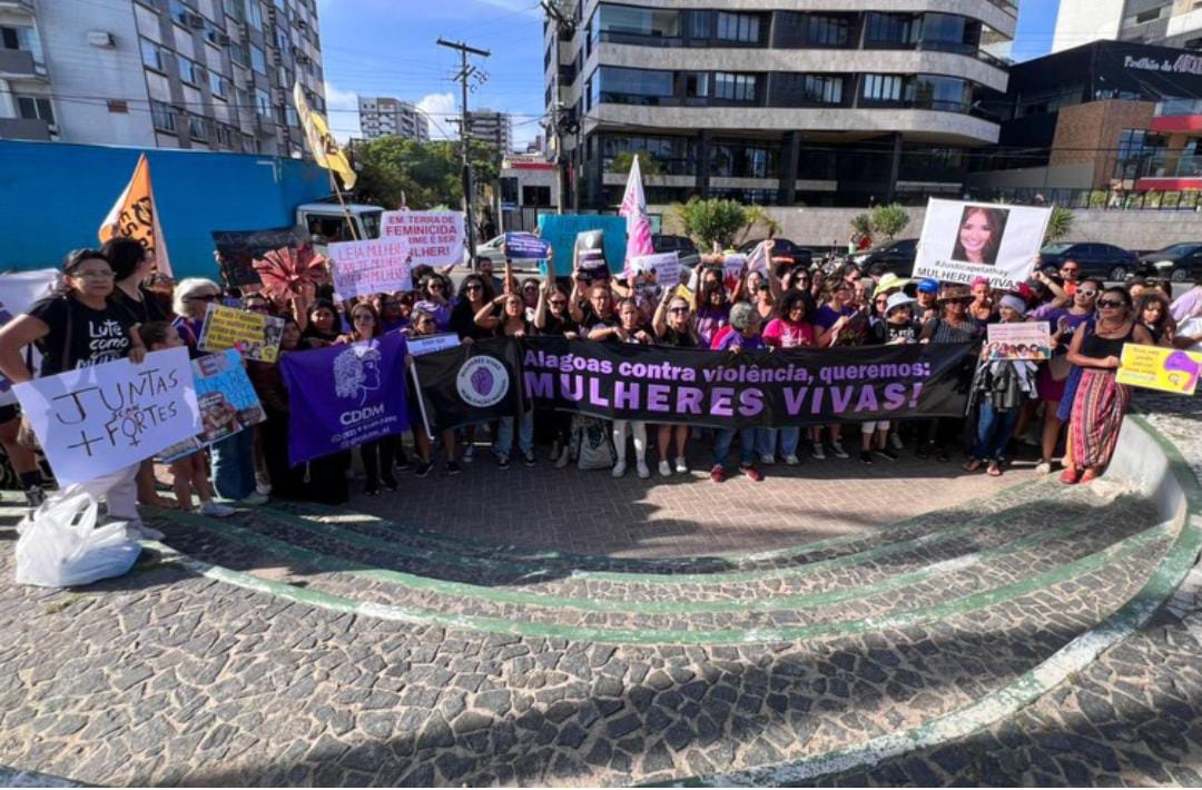 Durante o ato, participantes empunhavam cartazes com frases como “Alagoas contra a violência: queremos mulheres vivas” e teve reivindicações para que políticas públicas efetivas sejam ampliadas e colocadas em prática.