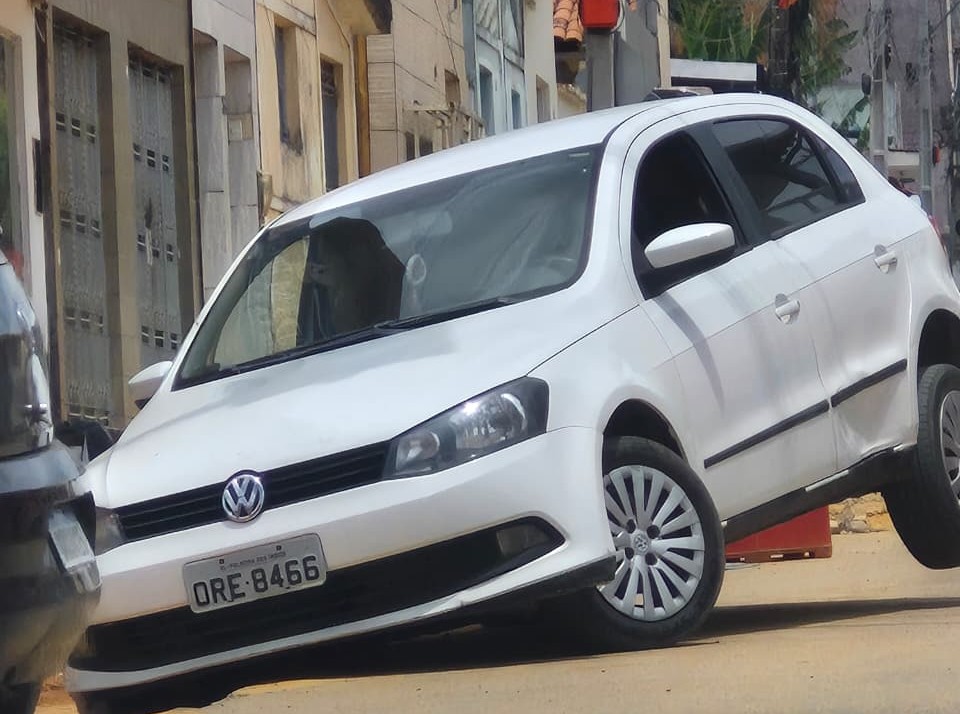 De acordo com testemunhas, o motorista não percebeu a área escavada e acabou avançando com o veículo, que ficou com um dos pneus preso sobre o buraco. Apesar do susto, ninguém ficou ferido.
