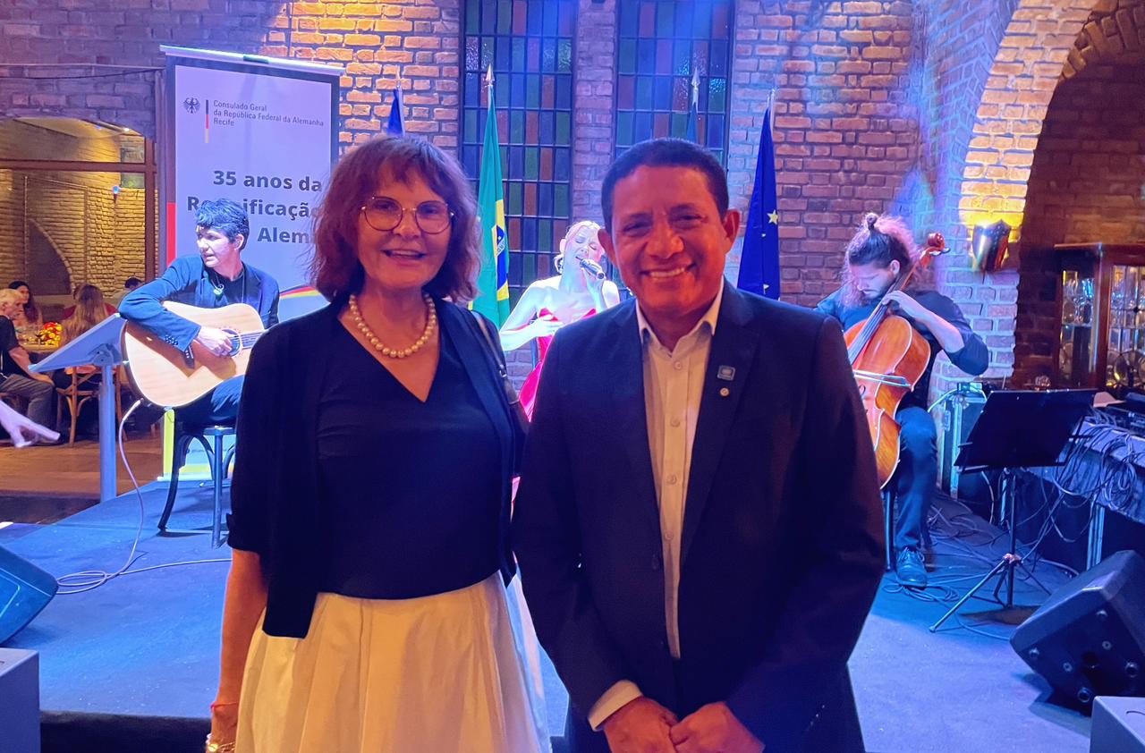 O secretário de Estado de Relações Federativas e Internacionais, Júlio Cezar, representou o Governo de Alagoas na celebração do Dia da Unidade Alemã, realizada nesta quarta-feira (15), no Recife. O evento foi promovido pelo Consulado-Geral da Alemanha no Nordeste, a convite do cônsul-geral Johannes Bloos e da consulesa Beatrice Wöhler, e contou com a presença da embaixadora da Alemanha no Brasil, Bettina Cadenbach.