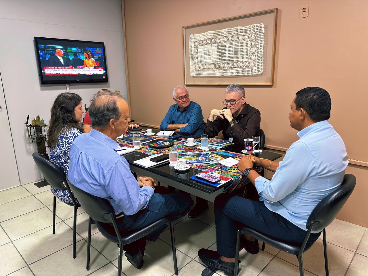 A implantação da Embrapa Alimentos e Territórios em Alagoas foi tema de reunião nesta quarta-feira (14), entre o secretário de Estado Júlio Cezar (Serfi) e representantes da Empresa Brasileira de Pesquisa Agropecuária (Embrapa), o chefe adjunto do Centro de Pesquisa, Tenisson Waldow, o pesquisador Ricardo Elesbão Alves; e a assessoria de Relações Institucionais Lígia Sardinha.